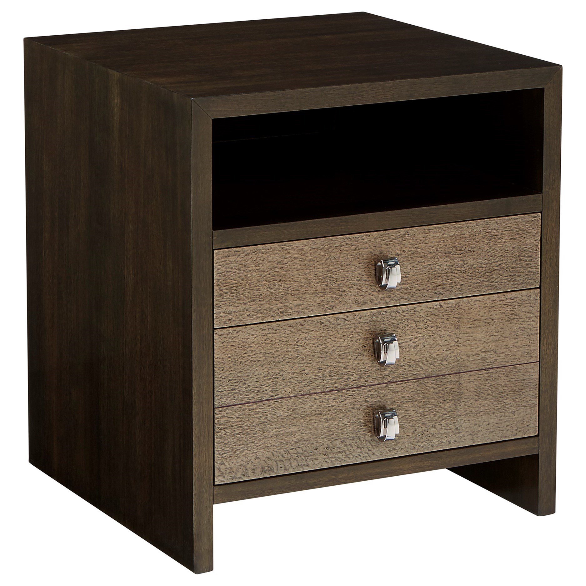 3 Drawer Mirrored End Table In Weathered White Traditional