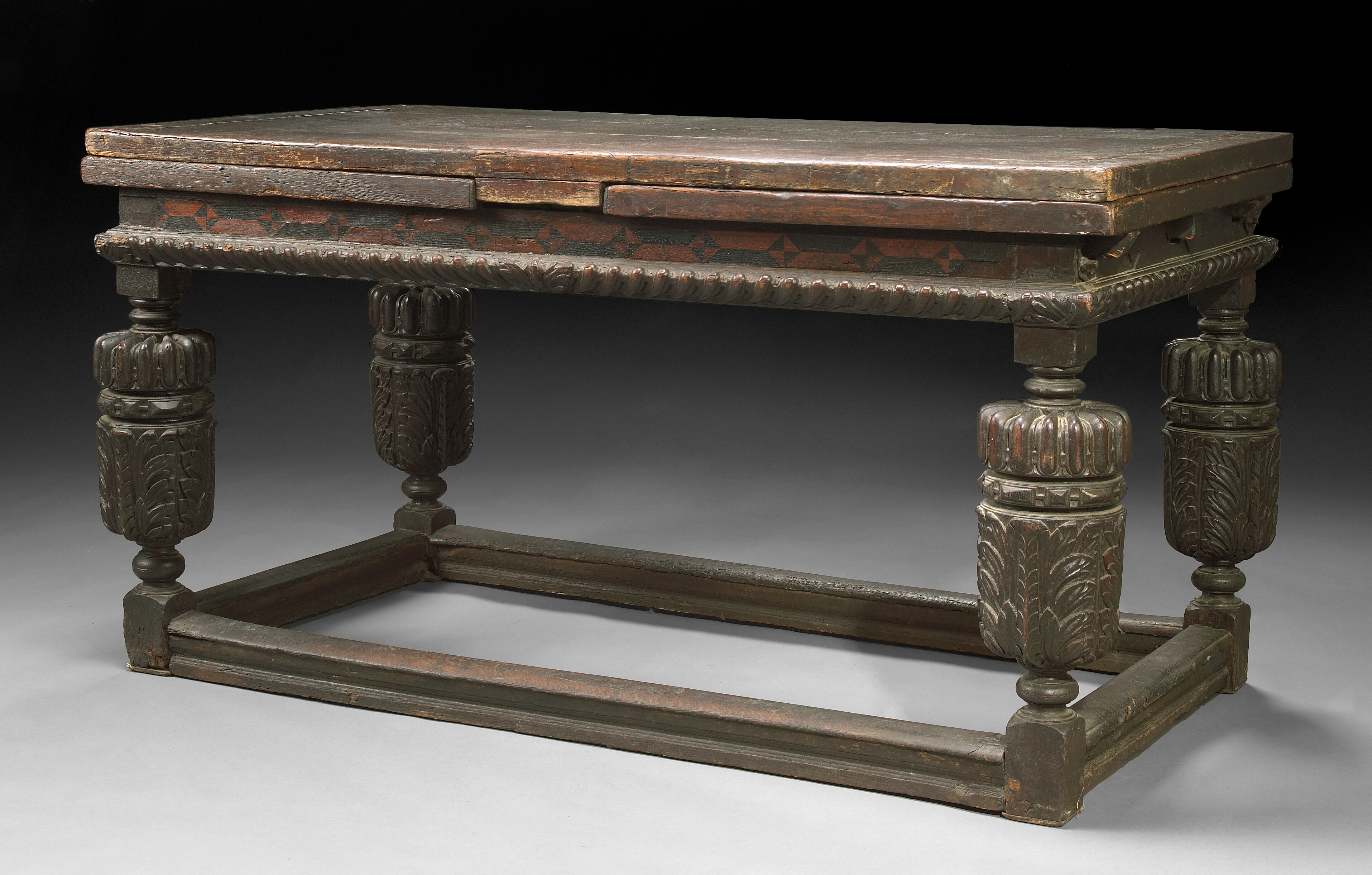 An Exceptionally Rare Elizabethan 6 Legged Oak Drawleaf Table
