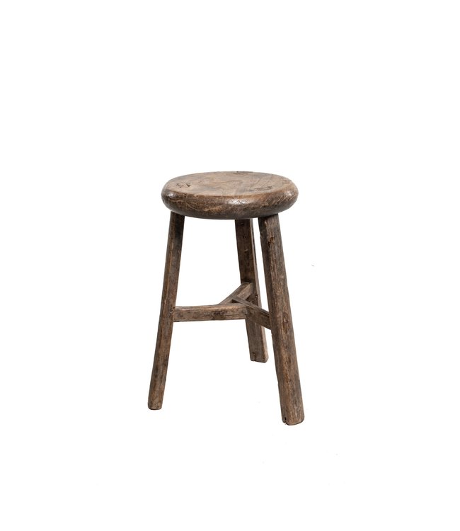 Couleur Locale Elm Wood Antique Stool Round 3 Couleur Locale